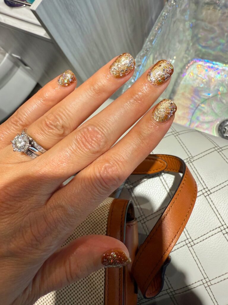 Sparkly nails for Saturday’s event. It’s light brown cateye with Dream of Dubai glitter on top: