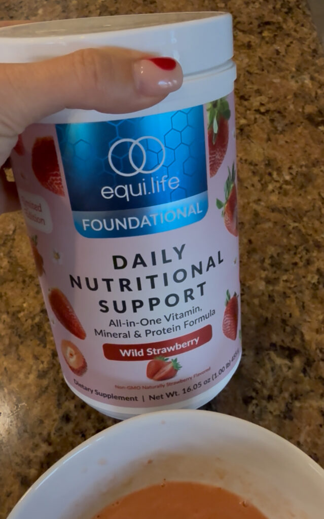 Daily Nutritional Support strawberry! I usually have the chocolate (every single day) but they recently released Wild Strawberry. It’s SO good. I was planning on making my usual protein pudding with it, but it was so good, I drank it straight-up. It tastes like strawberry milk – major nostalgia- but is packed with vitamins, minerals, and protein.