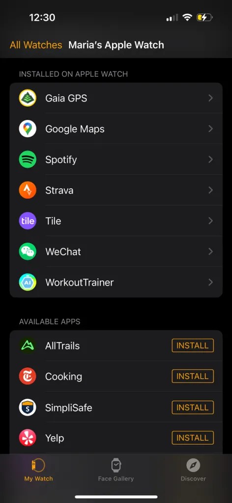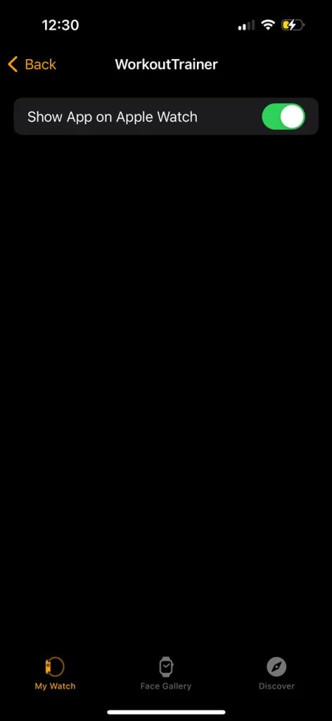 In order to get Workout Trainer AI working with your paired Apple Watch, you will need to install ‘WorkoutTrainer’ from the Watch app, have it enabled: