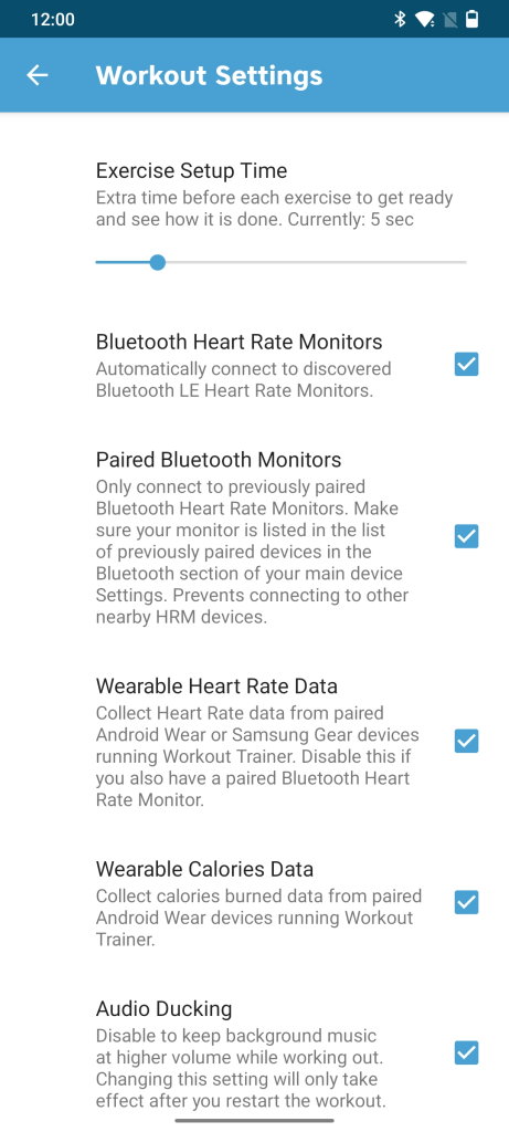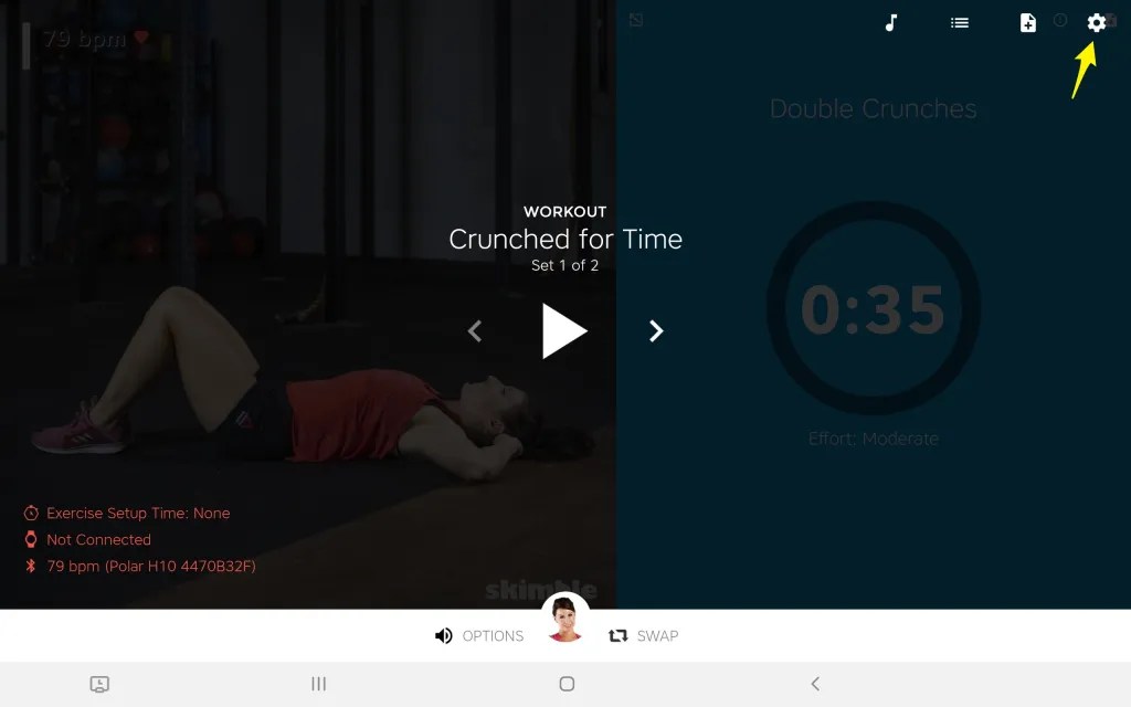 Whichever your HR monitoring device you choose to connect with Workout Trainer, our player will display the heart rate like the screenshot below. Tap the gear icon if you want to adjust your paired bluetooth monitor settings (a good option to have checked if you’re at a gym and don’t want to pick up your neighbor’s HR device readings). As you play your workout, you’ll see your real time HR data for free. On top of that, there are many more advanced heart rate and performance stats offered with Workout Trainer Pro+ membership.