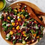 Brighten up your holiday table with this Christmas salad! It’s fresh and colorful, made with juicy pomegranates, roasted squash, and winter greens.