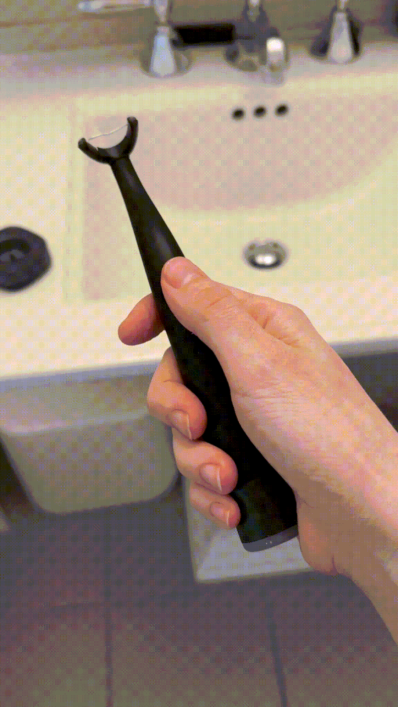 I currently use a wand to floss, since I hate the feeling of the spitty, slippery floss wrapped around my fingers. So I was already familiar with, and a fan of, the general system. But the real magic happens when you turn on Flaus’s sonic vibrations. At first, I wasn’t sure they were doing much. Although Flaus says they move the floss head in a left-to-right motion, I didn’t notice any real side-to-side action as much as a general fast, fluttery vibration. But once I finished flossing, my mouth felt noticeably cleaner.