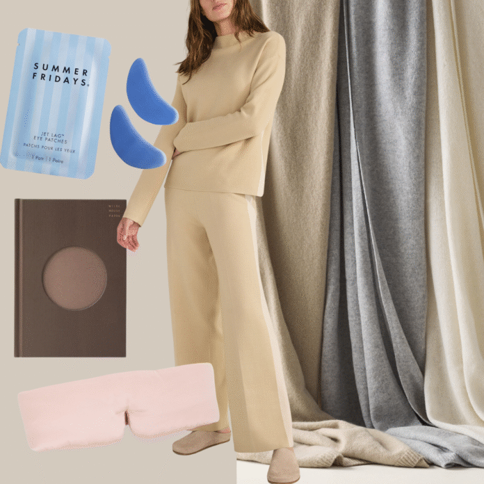Slip on the Lunya Weighted Washable Silk Sleep Mask and apply Summer Fridays Jet Lag Eye Patches mid-flight for an instant in-air refresh. Keep your phone tucked away and choose a book or playlist that expands time instead of compressing it. Breathe deeply, sip something nourishing, and let yourself soften into the moment.