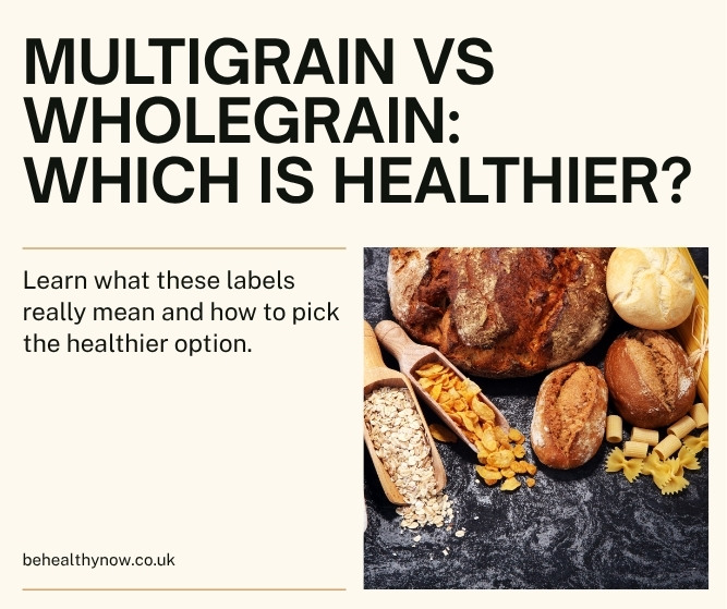 Wholegrain foods are generally better because they release energy more slowly and help keep blood sugar levels steadier. Multigrain can vary — some versions are mostly refined grains, which can cause quicker spikes.