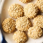 I can’t get enough of these Italian pignoli cookies! They’re deliciously chewy and nutty, with a rich almond flavor and crunchy pine nut coating. They’d be perfect for a holiday cookie plate!