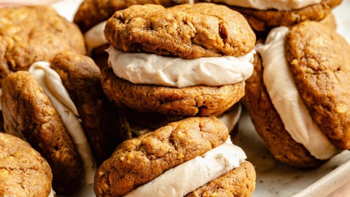 Salted Brown Butter Pumpkin Oatmeal Cream Pies