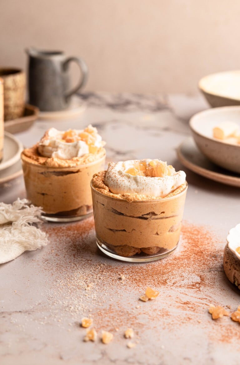 Give your canned pumpkin a worthy upgrade with this pumpkin tiramisu. Layers of spiced pumpkin cream meet freshly brewed coffee for a fall dessert that feels both elegant and irresistibly cozy.