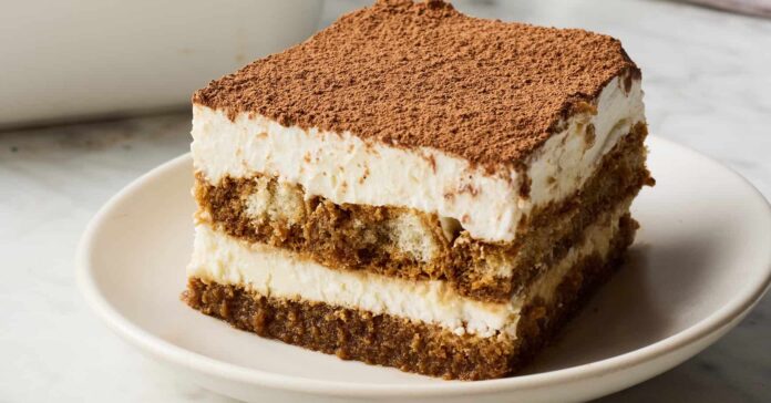Tiramisu topped with cocoa powder