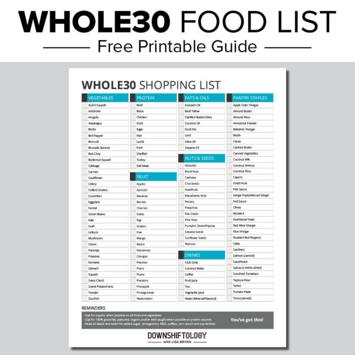 Start your Whole30 right by downloading my Whole30 Food list. It’s a shopping list that you can print out and stick on your fridge or bring to the grocery store. I’ve been around the Whole30 block and I’m here to help you navigate the guidelines and what foods to eat and avoid.