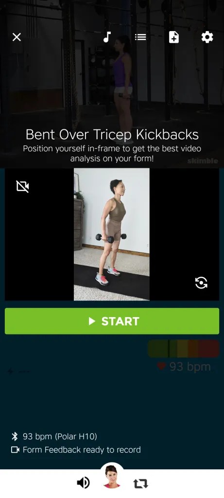 On the Form tab (formerly Exercise tab), Browse to an exercise and tap the Form Feedback button. You will then see the workout player with an overlay that will help you position yourself to be recorded for video-based analysis. Get set up with a good view of yourself, either in landscape or portrait mode. When you’re ready, tap the START button and we’ll give you a ‘3, 2, 1’ countdown to get into position. Perform the exercise while staying in-frame for 30 seconds.