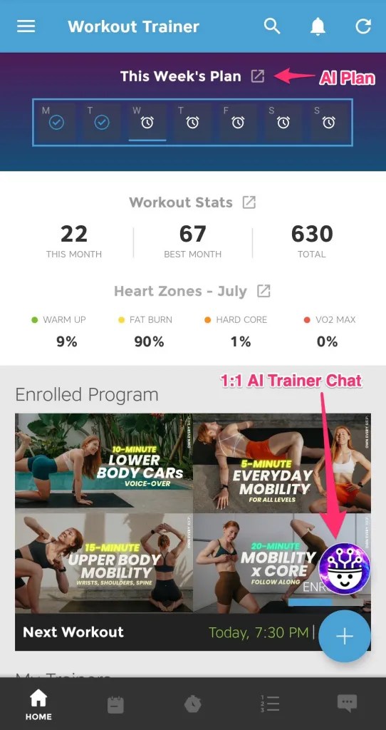 Have you been dreaming of having a personal trainer guide you towards your fitness goals? Our innovative AI-powered tools provide a level of customization akin to working with a real-life personal trainer. The new features, AI Weekly Plans and 1:1 AI Trainer Chat, are designed to deliver a tailored coaching experience. No matter your focus—be it strength, cardio, or flexibility—our AI coaching meets your needs with structure and progression. Try out these new features with the latest update of the Workout Trainer AI app for Android and iOS device owners and experience the difference!