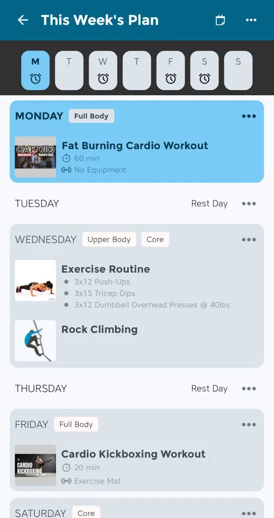 • From the Home tab, tap on your workout week calendar to open your ‘This Week’s Plan’ page.